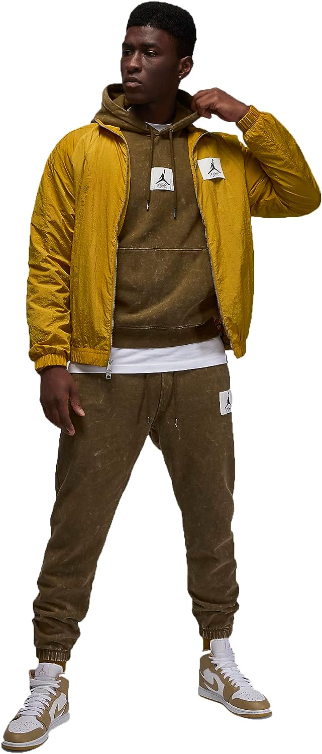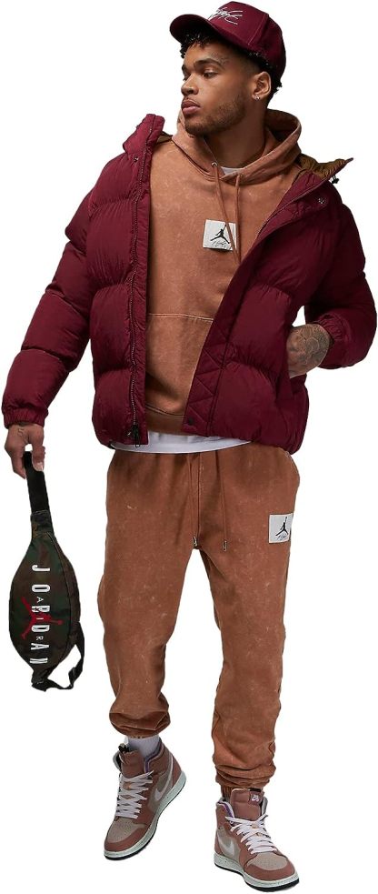 - Jordan Standard fit Stretch, ribbed cuffs and hem Lined hood with adjustable drawcord Kangaroo pocket Body/Hood Lining: 100% cotton. Rib: 97% cotton/3% spandex. Machine wash Imported