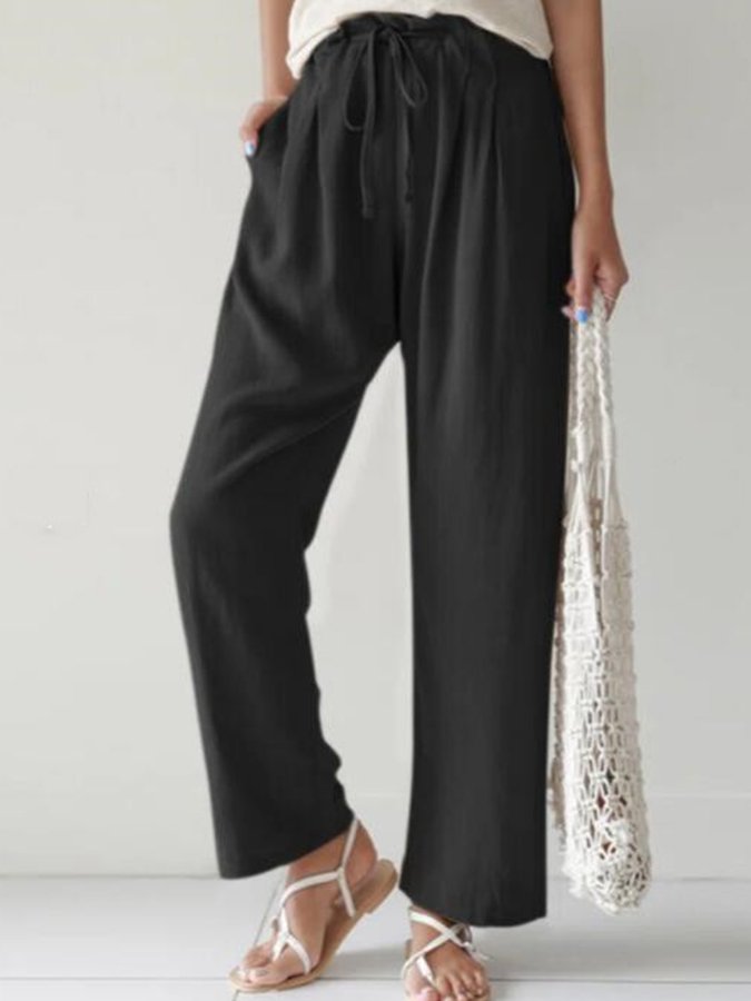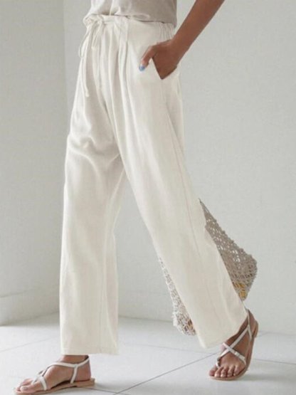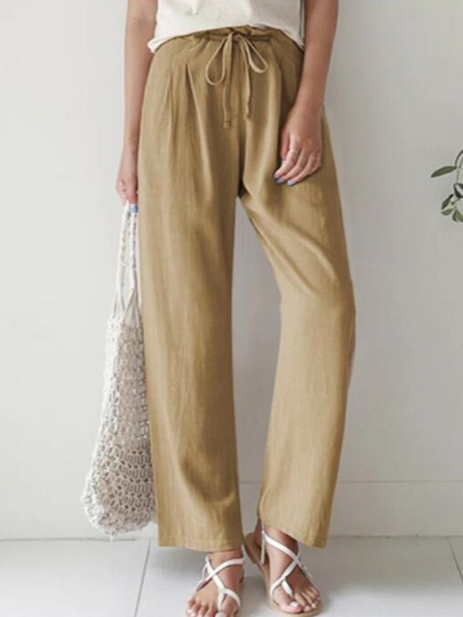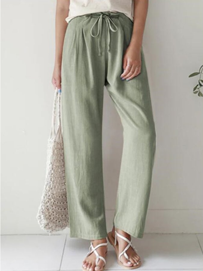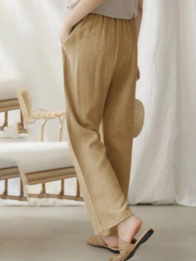 Casual Solid Elastic Waist Trousers