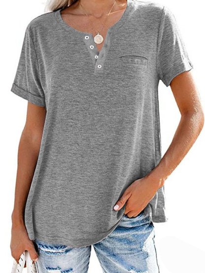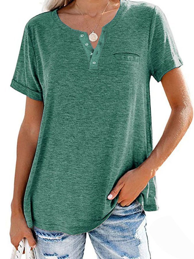 Fashion Solid Color Pocket Short Sleeve T-Shirt