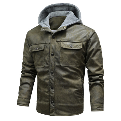 Men's Pocket Hooded Faux Leather Jacket