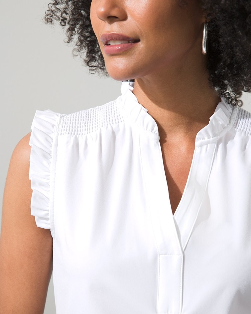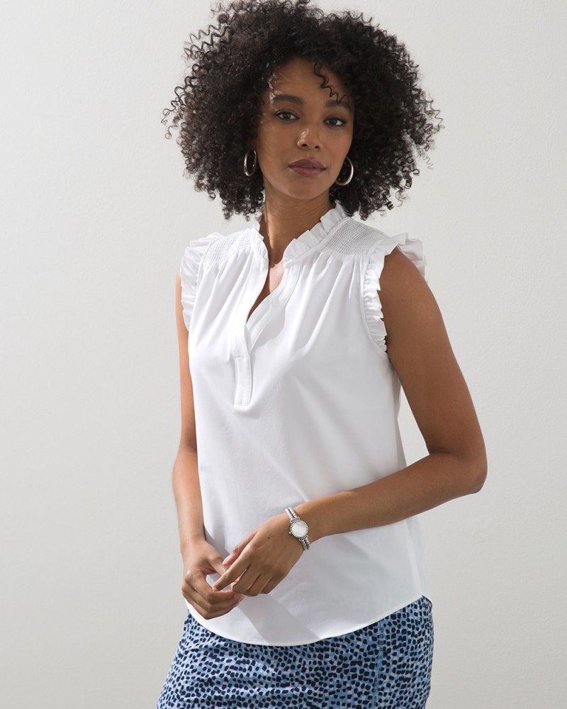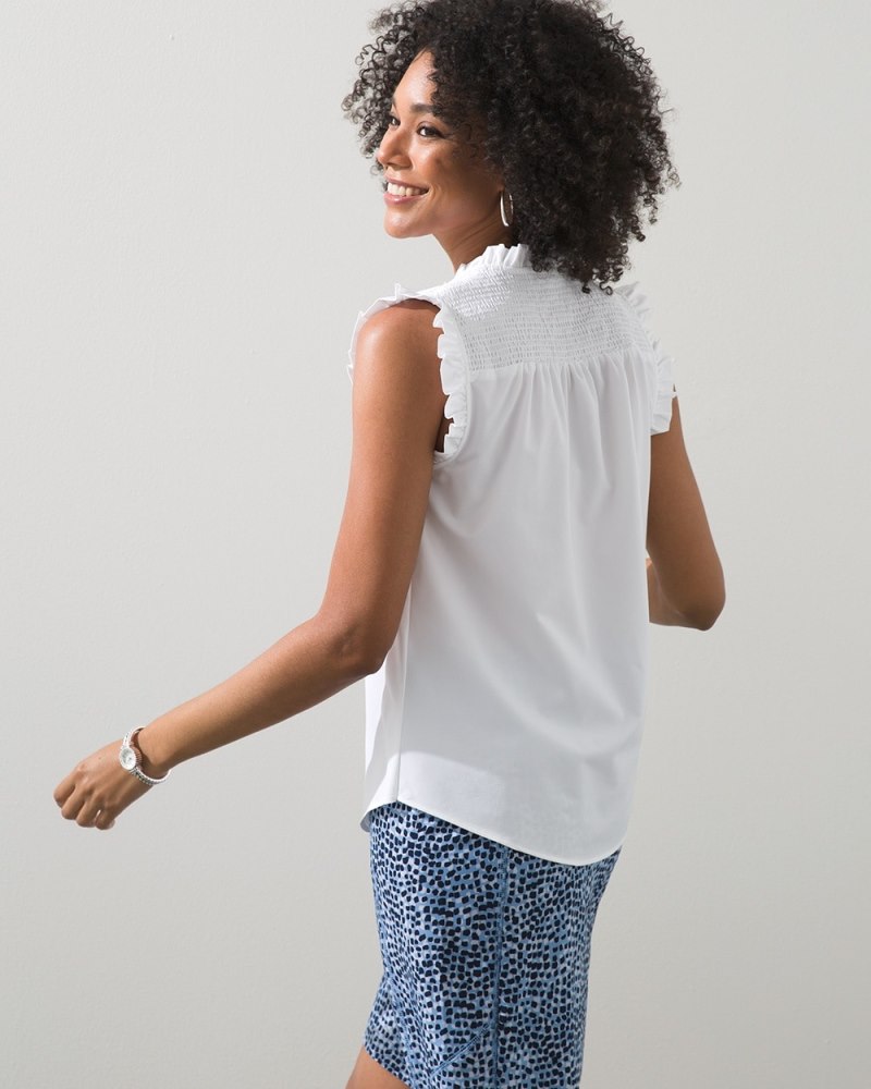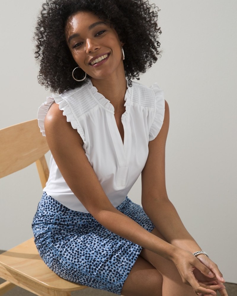 Add a feminine touch to your sporty style with our Zenergy UPF Smocked Ruffle Top. This design features smocked details on the shoulders and back, plus frill accents. This top pairs well with our Zenergy skorts, shorts, and pants, perfect for looking lovely while getting active.